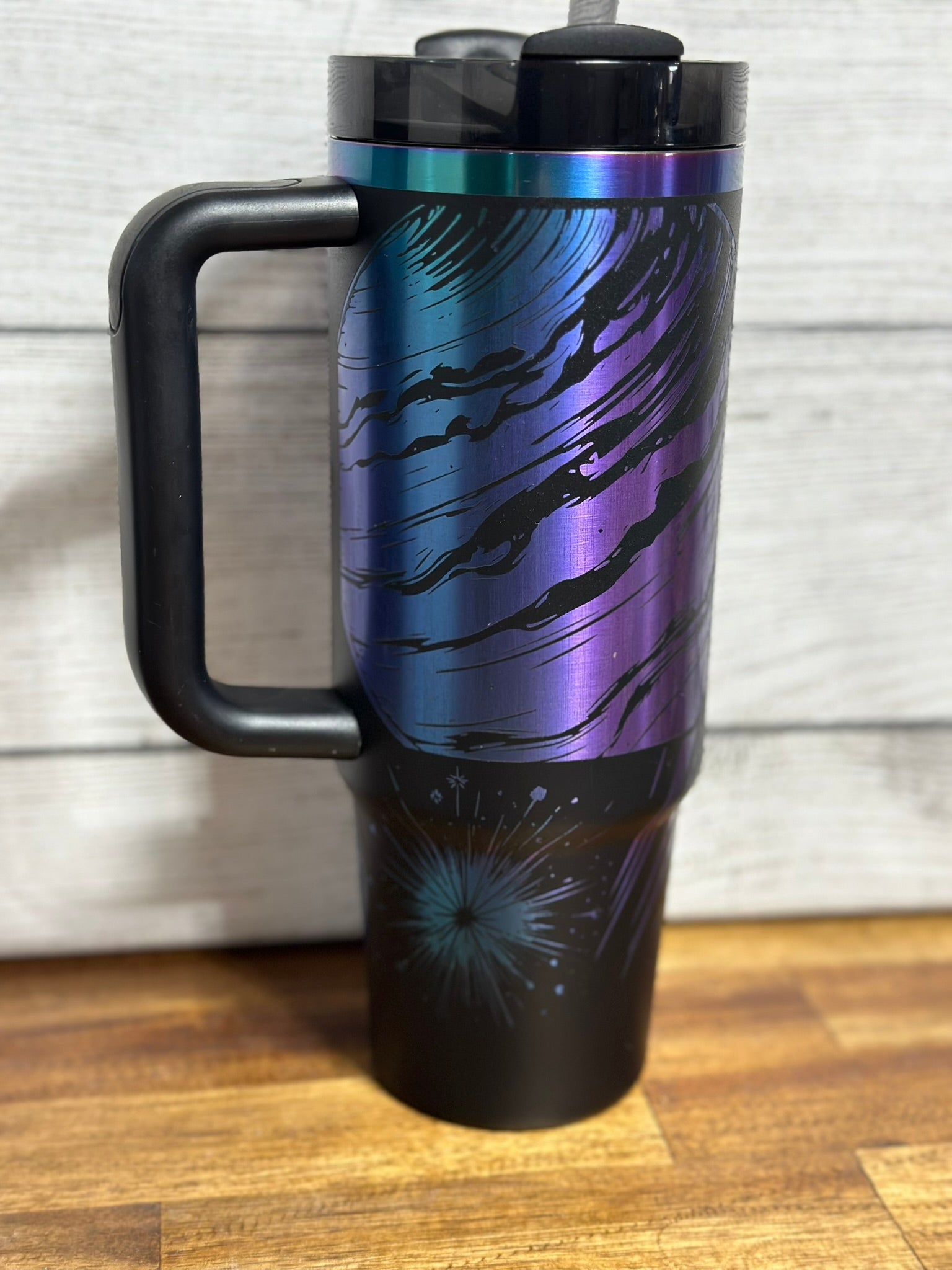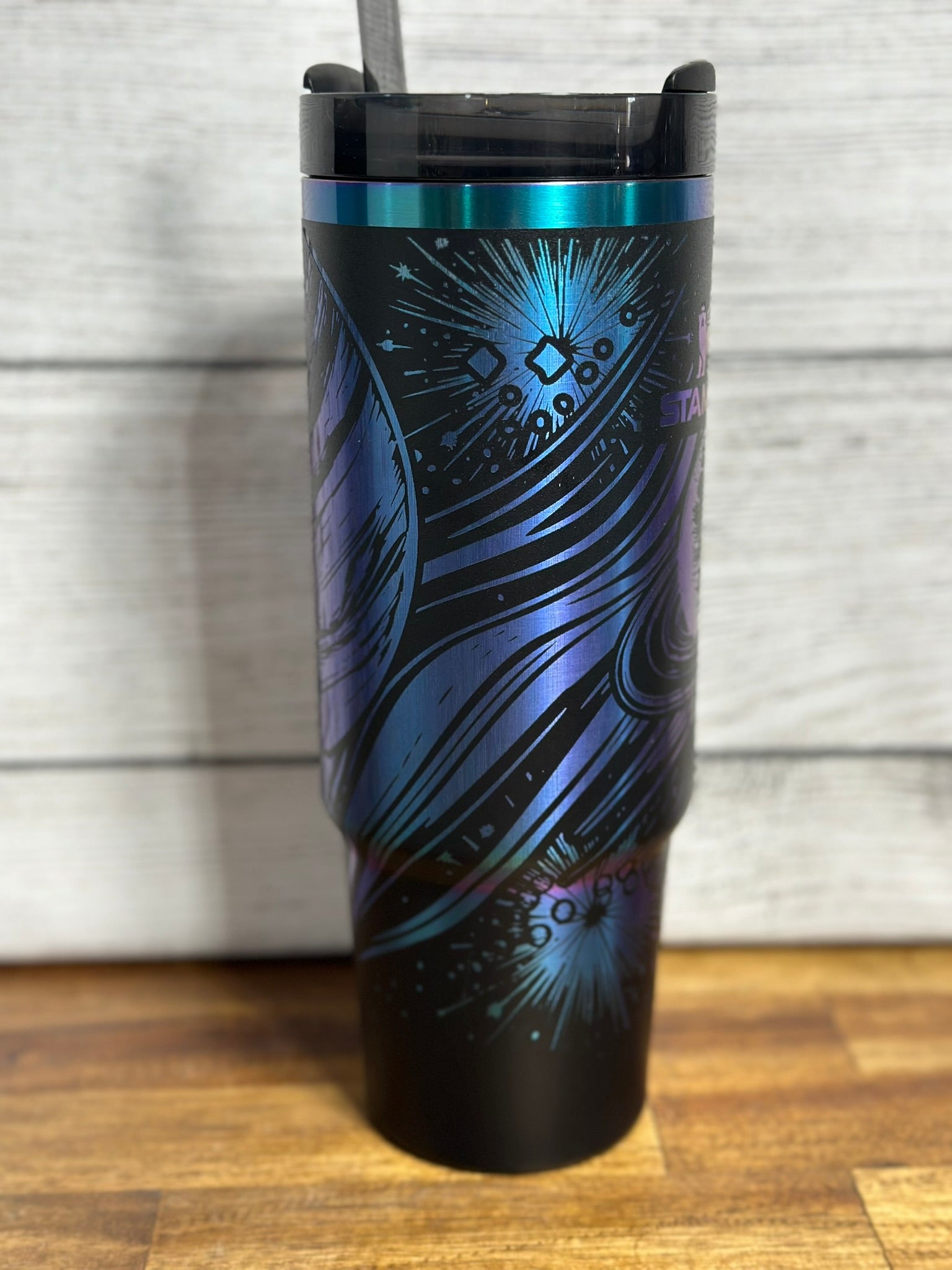 Elevate your hydration ritual with this Celestial Authentic Stanley Chroma Plated tumbler, expertly laser engraved with celestial motifs that capture the wonder of the cosmos. The premium chroma plating delivers superior insulation, keeping beverages at your desired temperature for hours. This durable, stainless steel construction withstands daily use while the custom engraving adds a personalized touch that transforms a functional essential into a conversation piece. Perfect for those who appreciate both stellar design and reliable performance.