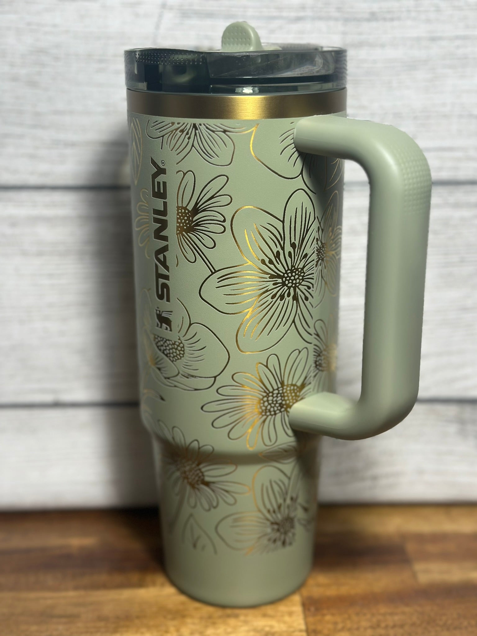 This premium Stanley ProTour tumbler combines durability with elegant floral design through precision laser engraving. The copper finish adds warmth and sophistication to your daily hydration routine. Built with Stanley's renowned insulation technology, it maintains beverage temperatures for hours while the custom engraved florals provide a personalized touch that sets it apart. Perfect for those who appreciate quality craftsmanship and refined aesthetics in their everyday essentials.